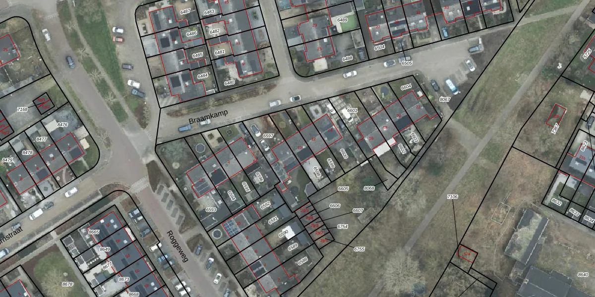 Het perceel waarop Braamkamp 10 staat heeft een oppervlakte van 165 m². Dit is een middelgroot perceel. De perceeloppervlakte wordt geregistreerd door het Kadaster. Gedetailleerde informatie over de maten van dit perceel kunt u vinden in het rapport Kadastrale kaart met maatvoering van Braamkamp 10.