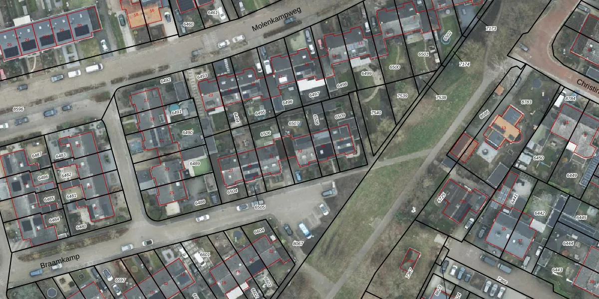 Het perceel waarop Braamkamp 33 staat heeft een oppervlakte van 225 m². Dit is een middelgroot perceel. De perceeloppervlakte wordt geregistreerd door het Kadaster. Gedetailleerde informatie over de maten van dit perceel kunt u vinden in het rapport Kadastrale kaart met maatvoering van Braamkamp 33.