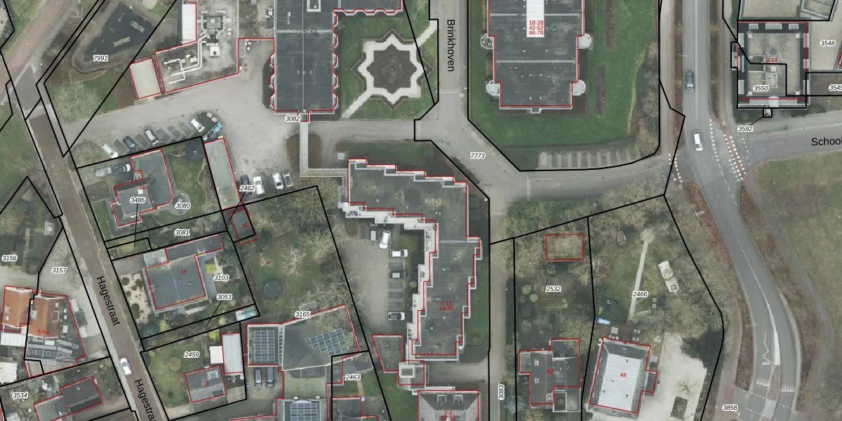 Het perceel waarop Brinkhoven 27 staat heeft een oppervlakte van 5544 m². Dit is een zeer groot perceel. De perceeloppervlakte wordt geregistreerd door het Kadaster. Gedetailleerde informatie over de maten van dit perceel kunt u vinden in het rapport Kadastrale kaart met maatvoering van Brinkhoven 27.