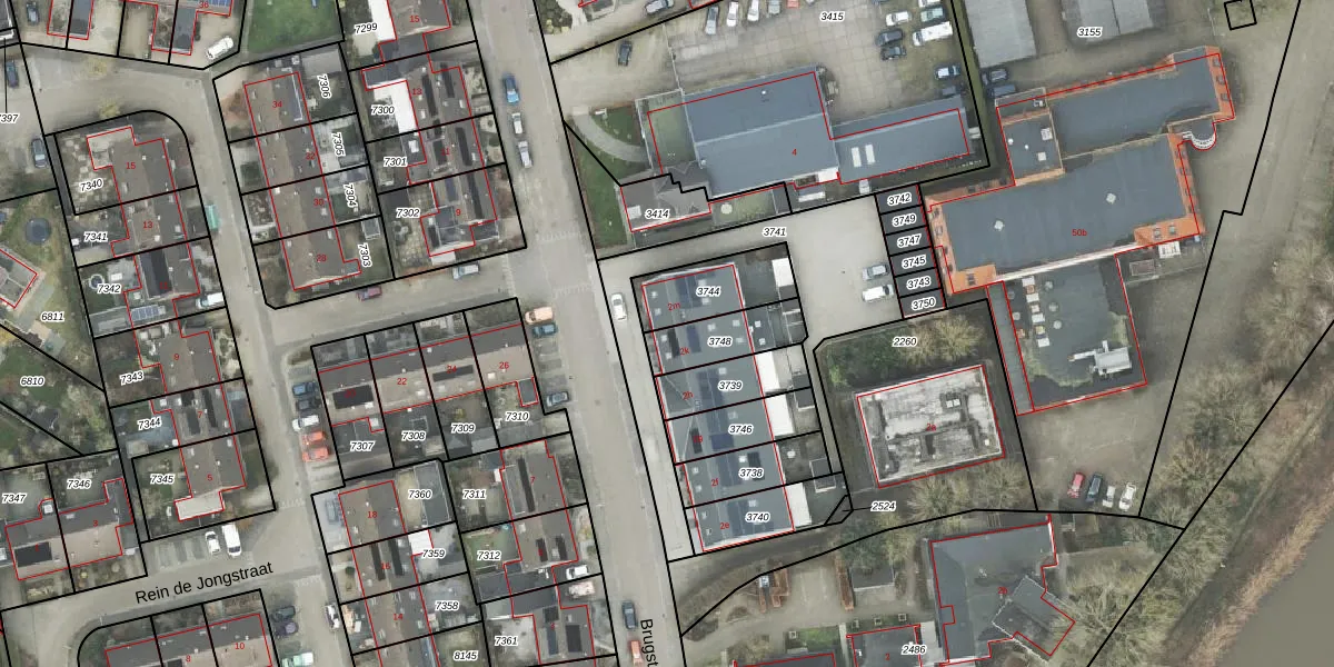 Het perceel waarop Brugstraat 2-k staat heeft een oppervlakte van 162 m². Dit is een middelgroot perceel. De perceeloppervlakte wordt geregistreerd door het Kadaster. Gedetailleerde informatie over de maten van dit perceel kunt u vinden in het rapport Kadastrale kaart met maatvoering van Brugstraat 2-k.