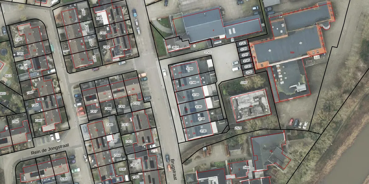 Het perceel waarop Brugstraat 2-h staat heeft een oppervlakte van 155 m². Dit is een middelgroot perceel. De perceeloppervlakte wordt geregistreerd door het Kadaster. Gedetailleerde informatie over de maten van dit perceel kunt u vinden in het rapport Kadastrale kaart met maatvoering van Brugstraat 2-h.