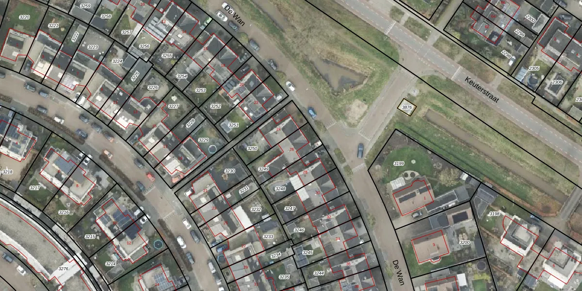 Het perceel waarop De Wan 26 staat heeft een oppervlakte van 223 m². Dit is een middelgroot perceel. De perceeloppervlakte wordt geregistreerd door het Kadaster. Gedetailleerde informatie over de maten van dit perceel kunt u vinden in het rapport Kadastrale kaart met maatvoering van De Wan 26.