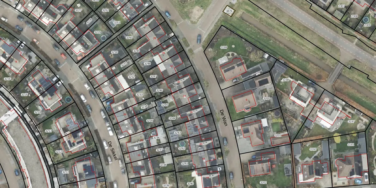 Het perceel waarop De Wan 34 staat heeft een oppervlakte van 229 m². Dit is een middelgroot perceel. De perceeloppervlakte wordt geregistreerd door het Kadaster. Gedetailleerde informatie over de maten van dit perceel kunt u vinden in het rapport Kadastrale kaart met maatvoering van De Wan 34.