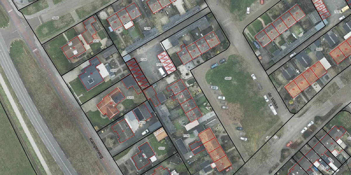 Het perceel waarop de Wikke 15 staat heeft een oppervlakte van 2770 m². Dit is een zeer groot perceel. De perceeloppervlakte wordt geregistreerd door het Kadaster. Gedetailleerde informatie over de maten van dit perceel kunt u vinden in het rapport Kadastrale kaart met maatvoering van de Wikke 15.