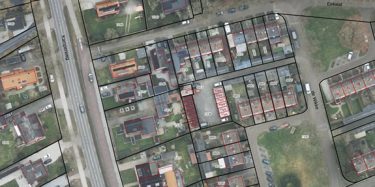 Het perceel waarop de Wikke 49 staat heeft een oppervlakte van 37 m². Dit is een klein perceel. De perceeloppervlakte wordt geregistreerd door het Kadaster. Gedetailleerde informatie over de maten van dit perceel kunt u vinden in het rapport Kadastrale kaart met maatvoering van de Wikke 49.