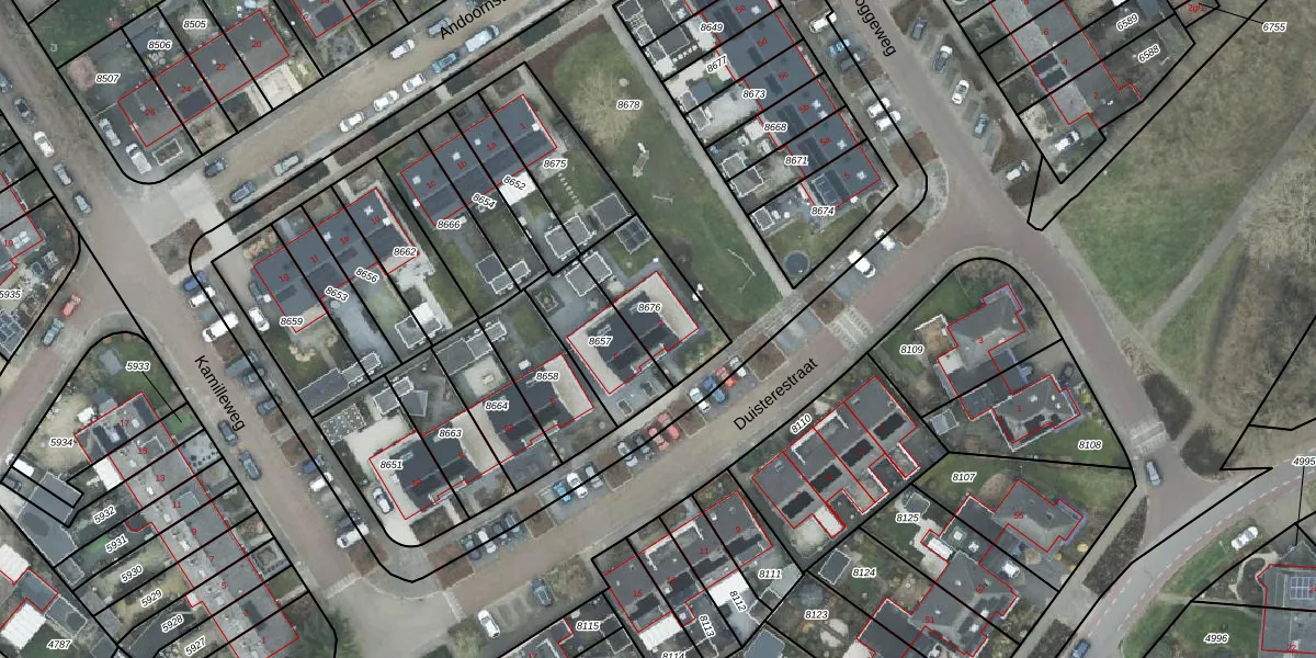 Het perceel waarop Duisterestraat 2 staat heeft een oppervlakte van 274 m². Dit is een middelgroot perceel. De perceeloppervlakte wordt geregistreerd door het Kadaster. Gedetailleerde informatie over de maten van dit perceel kunt u vinden in het rapport Kadastrale kaart met maatvoering van Duisterestraat 2.