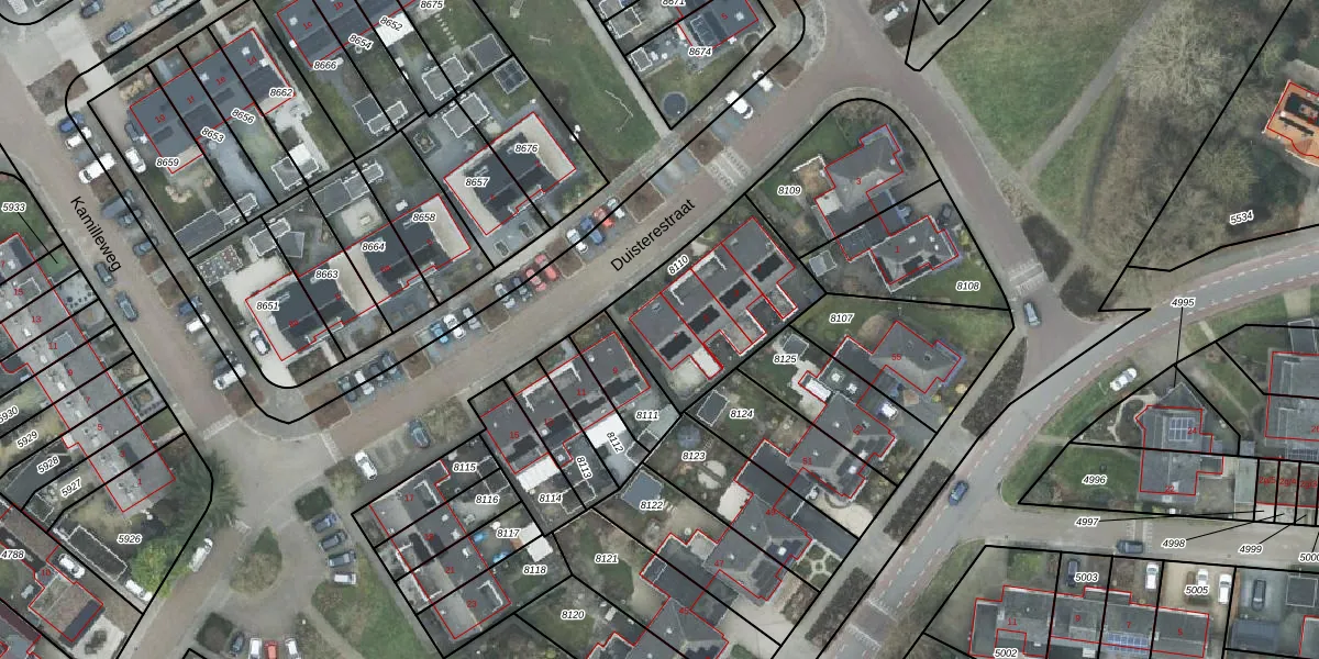 Het perceel waarop Duisterestraat 7 staat heeft een oppervlakte van 545 m². Dit is een groot perceel. De perceeloppervlakte wordt geregistreerd door het Kadaster. Gedetailleerde informatie over de maten van dit perceel kunt u vinden in het rapport Kadastrale kaart met maatvoering van Duisterestraat 7.
