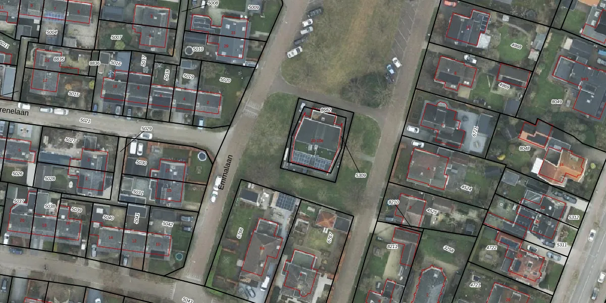 Emmalaan 10 is gelegen op kadastraal perceel HDE00K5309. Deze kadastrale aanduiding is uniek en wordt gebruikt door het Kadaster om eigendomsrechten en andere zakelijke rechten vast te leggen. Het perceel maakt onderdeel uit van de kadastrale gemeente Heerde.