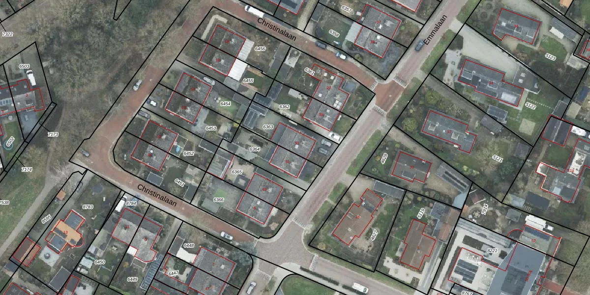 Gebruik de zoekbalk of klik op een perceel voor informatie over de adressen binnen dit perceel.