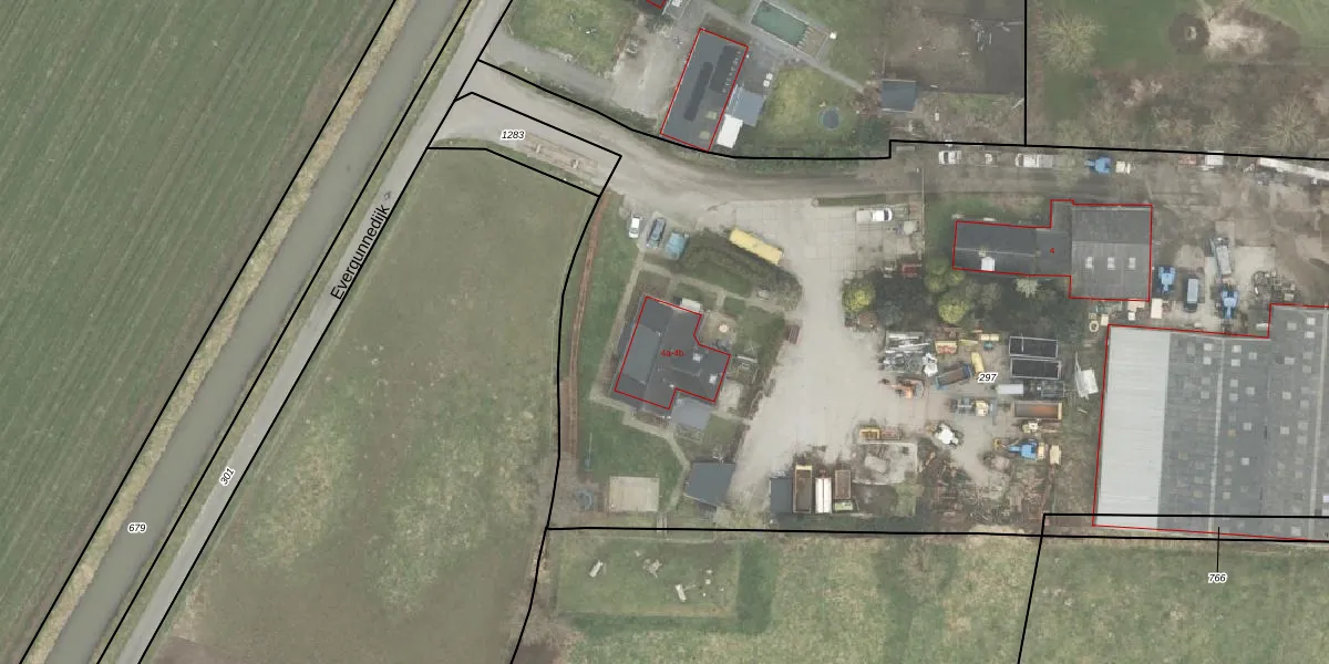 Het perceel waarop Evergunnedijk 4-b staat heeft een oppervlakte van 7380 m². Dit is een zeer groot perceel. De perceeloppervlakte wordt geregistreerd door het Kadaster. Gedetailleerde informatie over de maten van dit perceel kunt u vinden in het rapport Kadastrale kaart met maatvoering van Evergunnedijk 4-b.