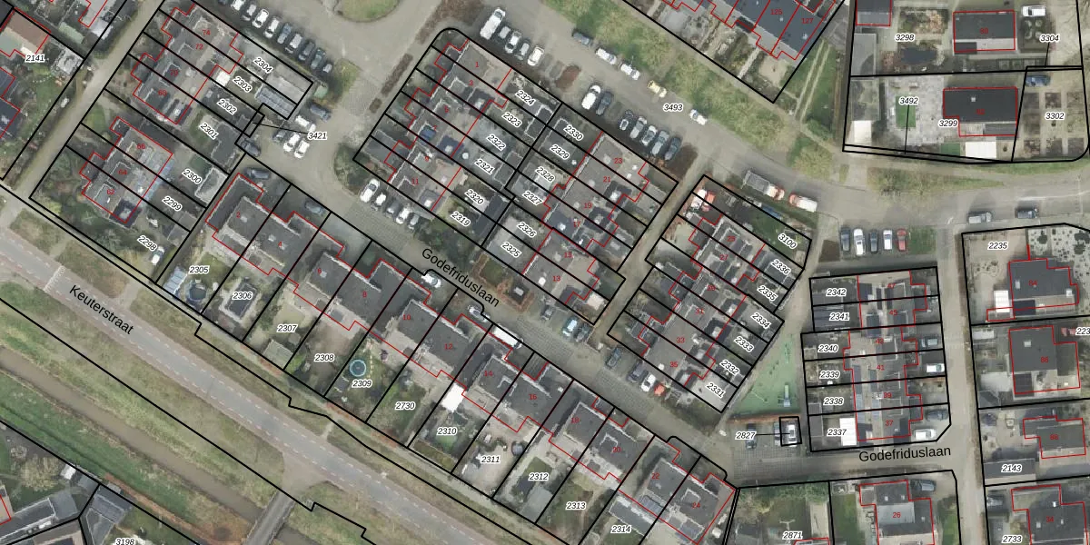 Godefriduslaan 13 is gelegen op kadastraal perceel HDE00B2325. Deze kadastrale aanduiding is uniek en wordt gebruikt door het Kadaster om eigendomsrechten en andere zakelijke rechten vast te leggen. Het perceel maakt onderdeel uit van de kadastrale gemeente Heerde.