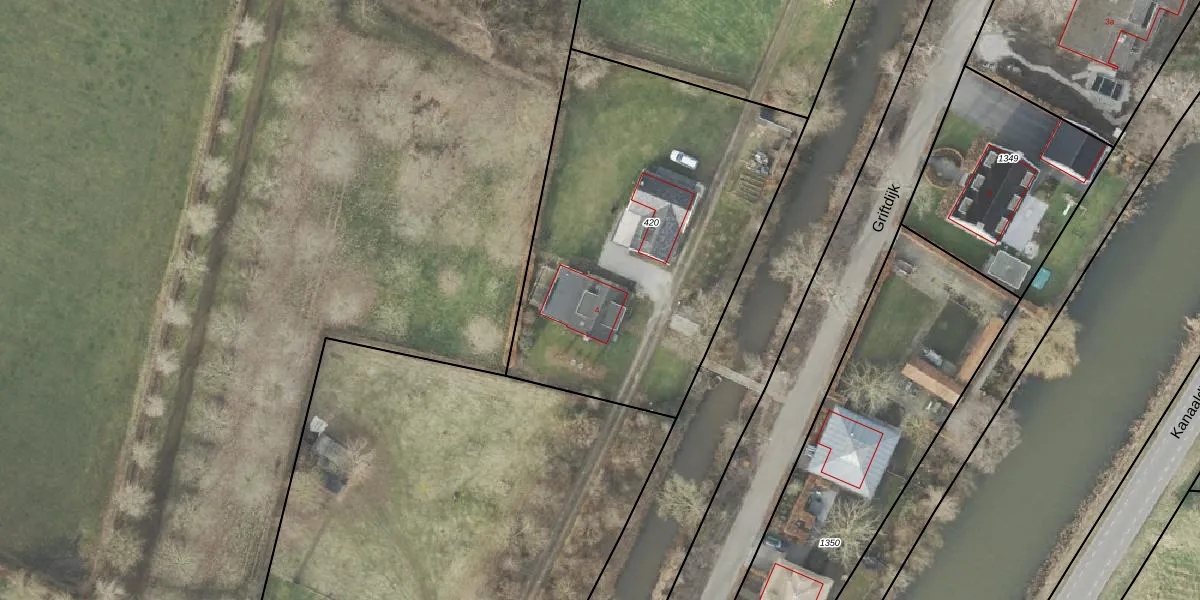Het perceel waarop Griftdijk 4 staat heeft een oppervlakte van 1990 m². Dit is een zeer groot perceel. De perceeloppervlakte wordt geregistreerd door het Kadaster. Gedetailleerde informatie over de maten van dit perceel kunt u vinden in het rapport Kadastrale kaart met maatvoering van Griftdijk 4.