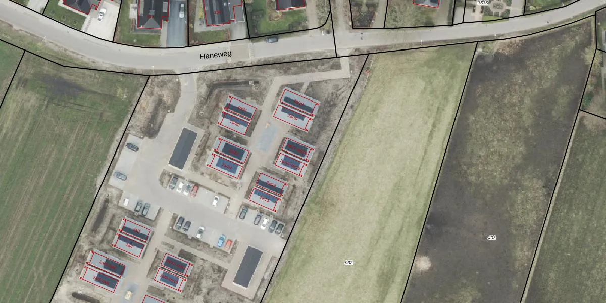 Het perceel waarop Haneweg 2-a-18 staat heeft een oppervlakte van 3,0 ha. Dit is een zeer groot perceel. De perceeloppervlakte wordt geregistreerd door het Kadaster. Gedetailleerde informatie over de maten van dit perceel kunt u vinden in het rapport Kadastrale kaart met maatvoering van Haneweg 2-a-18.