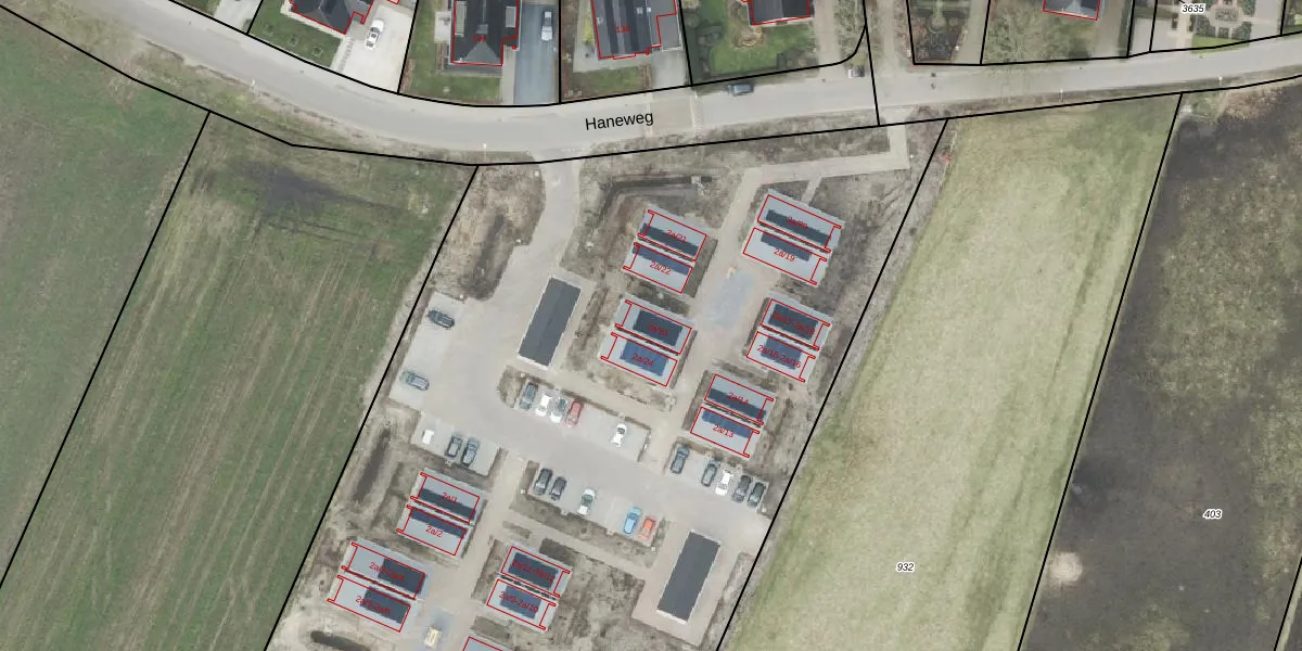 Het perceel waarop Haneweg 2-a-23 staat heeft een oppervlakte van 3,0 ha. Dit is een zeer groot perceel. De perceeloppervlakte wordt geregistreerd door het Kadaster. Gedetailleerde informatie over de maten van dit perceel kunt u vinden in het rapport Kadastrale kaart met maatvoering van Haneweg 2-a-23.