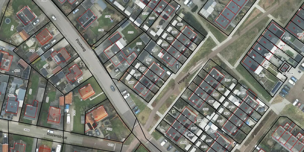 Gebruik de zoekbalk of klik op een perceel voor informatie over de adressen binnen dit perceel.
