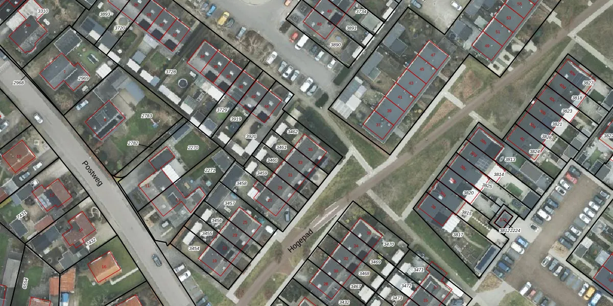 Gebruik de zoekbalk of klik op een perceel voor informatie over de adressen binnen dit perceel.