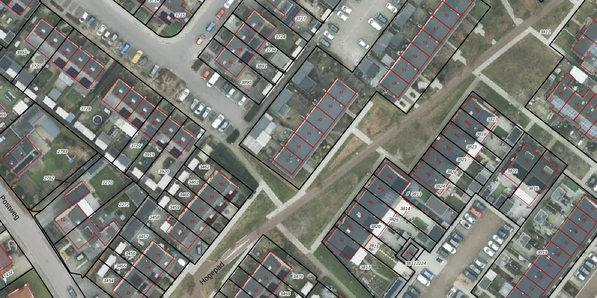 Het perceel waarop Hogepad 39 staat heeft een oppervlakte van 3122 m². Dit is een zeer groot perceel. De perceeloppervlakte wordt geregistreerd door het Kadaster. Gedetailleerde informatie over de maten van dit perceel kunt u vinden in het rapport Kadastrale kaart met maatvoering van Hogepad 39.