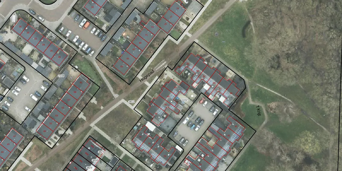 Het perceel waarop Hogepad 48 staat heeft een oppervlakte van 3525 m². Dit is een zeer groot perceel. De perceeloppervlakte wordt geregistreerd door het Kadaster. Gedetailleerde informatie over de maten van dit perceel kunt u vinden in het rapport Kadastrale kaart met maatvoering van Hogepad 48.