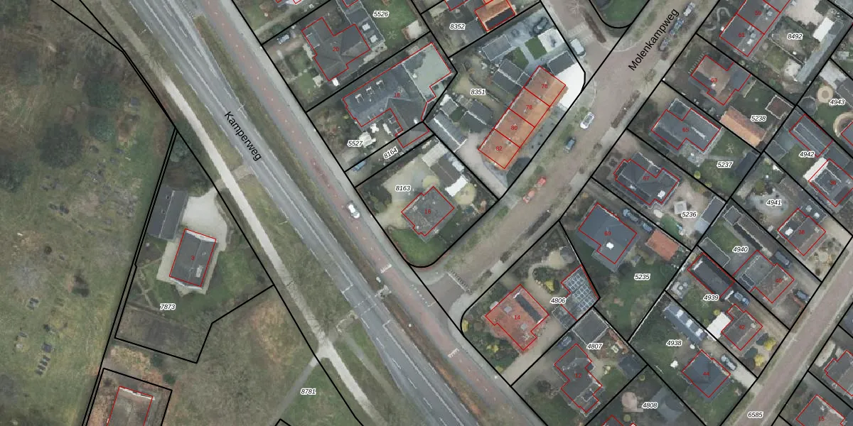 Het perceel waarop Kamperweg 16 staat heeft een oppervlakte van 563 m². Dit is een groot perceel. De perceeloppervlakte wordt geregistreerd door het Kadaster. Gedetailleerde informatie over de maten van dit perceel kunt u vinden in het rapport Kadastrale kaart met maatvoering van Kamperweg 16.