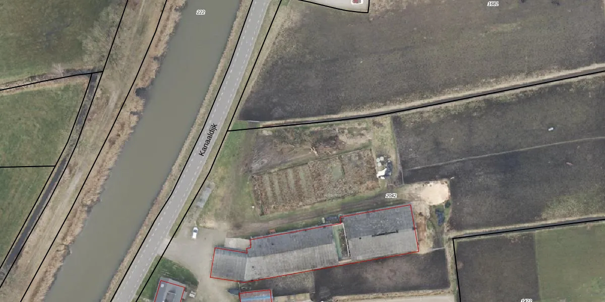 Het perceel waarop Kanaaldijk 28-1 staat heeft een oppervlakte van 9895 m². Dit is een zeer groot perceel. De perceeloppervlakte wordt geregistreerd door het Kadaster. Gedetailleerde informatie over de maten van dit perceel kunt u vinden in het rapport Kadastrale kaart met maatvoering van Kanaaldijk 28-1.