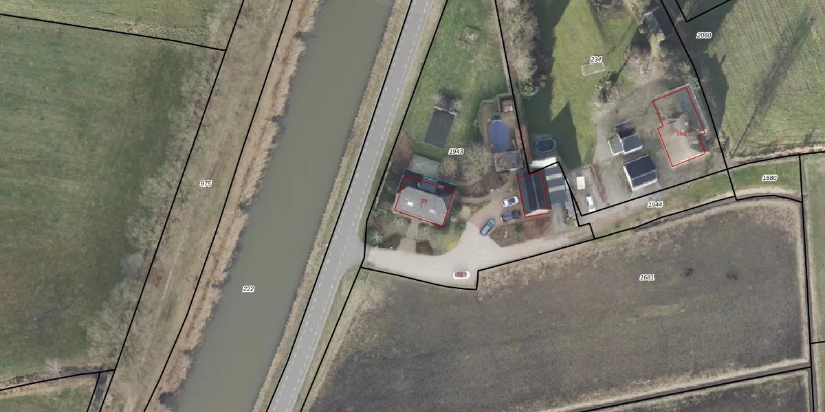 Het perceel waarop Kanaaldijk 29 staat heeft een oppervlakte van 2380 m². Dit is een zeer groot perceel. De perceeloppervlakte wordt geregistreerd door het Kadaster. Gedetailleerde informatie over de maten van dit perceel kunt u vinden in het rapport Kadastrale kaart met maatvoering van Kanaaldijk 29.