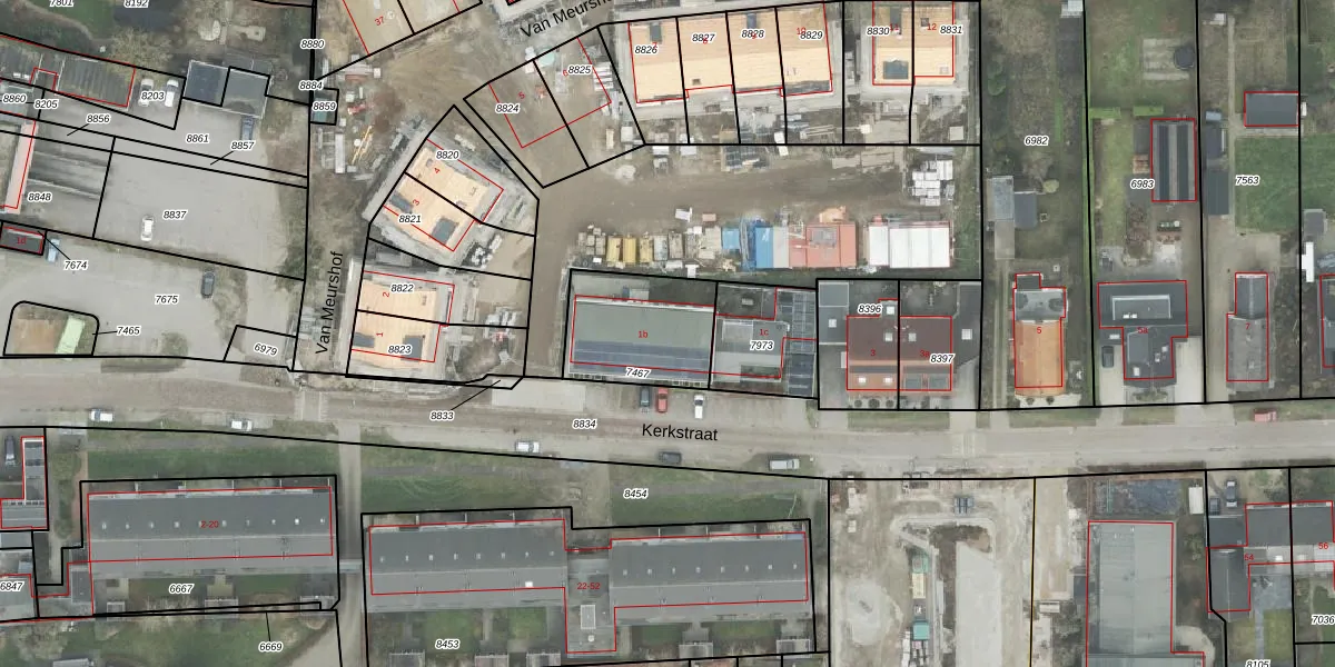 Het perceel waarop Kerkstraat 1-b staat heeft een oppervlakte van 360 m². Dit is een groot perceel. De perceeloppervlakte wordt geregistreerd door het Kadaster. Gedetailleerde informatie over de maten van dit perceel kunt u vinden in het rapport Kadastrale kaart met maatvoering van Kerkstraat 1-b.