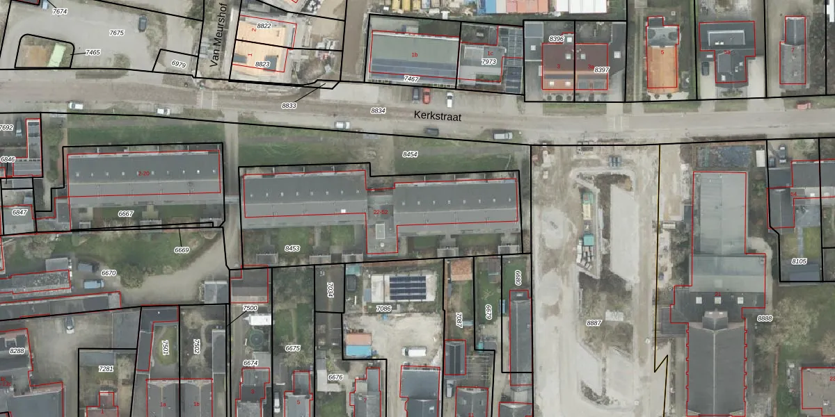 Het perceel waarop Kerkstraat 40 staat heeft een oppervlakte van 1490 m². Dit is een zeer groot perceel. De perceeloppervlakte wordt geregistreerd door het Kadaster. Gedetailleerde informatie over de maten van dit perceel kunt u vinden in het rapport Kadastrale kaart met maatvoering van Kerkstraat 40.