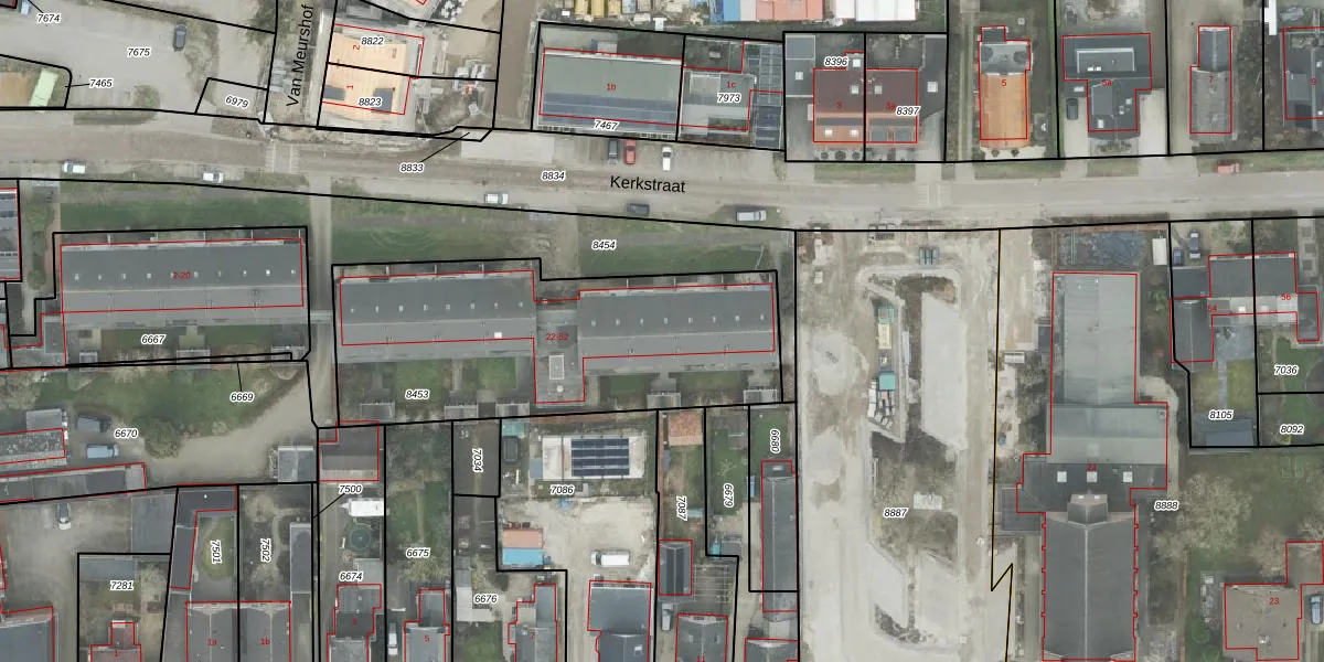 Het perceel waarop Kerkstraat 44 staat heeft een oppervlakte van 1490 m². Dit is een zeer groot perceel. De perceeloppervlakte wordt geregistreerd door het Kadaster. Gedetailleerde informatie over de maten van dit perceel kunt u vinden in het rapport Kadastrale kaart met maatvoering van Kerkstraat 44.