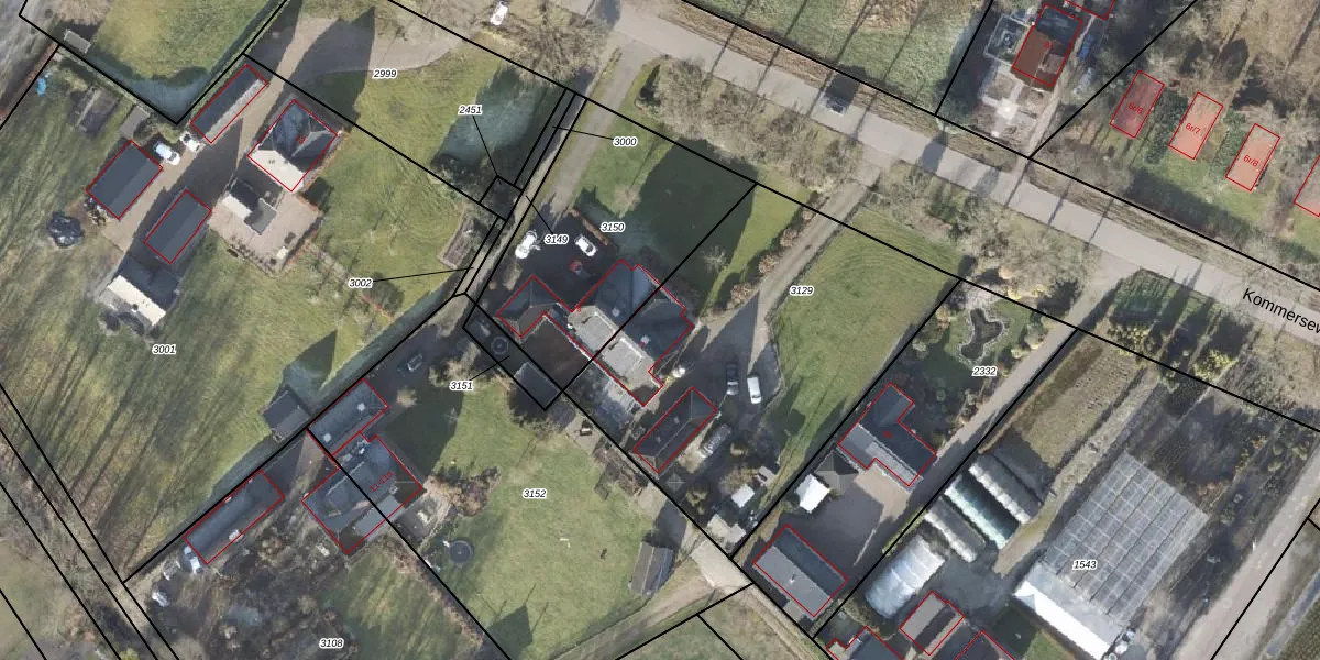 Het perceel waarop Kommerseweg 7 staat heeft een oppervlakte van 1710 m². Dit is een zeer groot perceel. De perceeloppervlakte wordt geregistreerd door het Kadaster. Gedetailleerde informatie over de maten van dit perceel kunt u vinden in het rapport Kadastrale kaart met maatvoering van Kommerseweg 7.