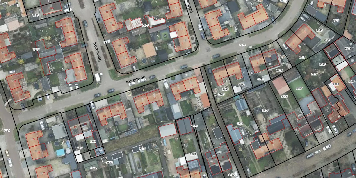 Korenweg 15 is gelegen op kadastraal perceel HDE00K8572. Deze kadastrale aanduiding is uniek en wordt gebruikt door het Kadaster om eigendomsrechten en andere zakelijke rechten vast te leggen. Het perceel maakt onderdeel uit van de kadastrale gemeente Heerde.