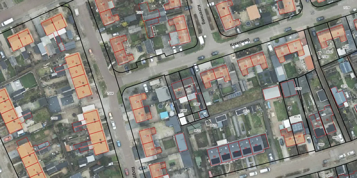 Het perceel waarop Korenweg 27 staat heeft een oppervlakte van 207 m². Dit is een middelgroot perceel. De perceeloppervlakte wordt geregistreerd door het Kadaster. Gedetailleerde informatie over de maten van dit perceel kunt u vinden in het rapport Kadastrale kaart met maatvoering van Korenweg 27.