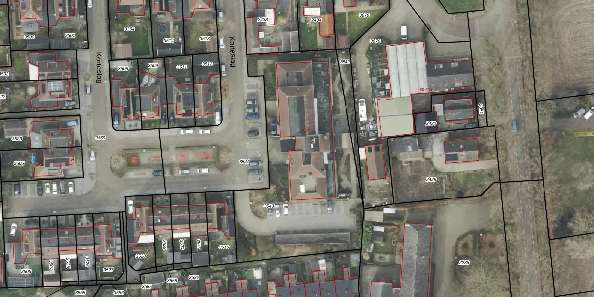 Het perceel waarop Korteslag 21 staat heeft een oppervlakte van 2300 m². Dit is een zeer groot perceel. De perceeloppervlakte wordt geregistreerd door het Kadaster. Gedetailleerde informatie over de maten van dit perceel kunt u vinden in het rapport Kadastrale kaart met maatvoering van Korteslag 21.
