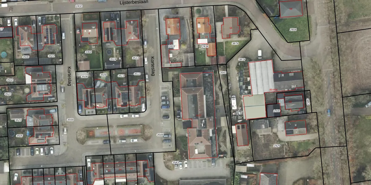 Het perceel waarop Korteslag 25-1 staat heeft een oppervlakte van 2300 m². Dit is een zeer groot perceel. De perceeloppervlakte wordt geregistreerd door het Kadaster. Gedetailleerde informatie over de maten van dit perceel kunt u vinden in het rapport Kadastrale kaart met maatvoering van Korteslag 25-1.