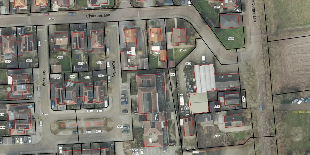 Het perceel waarop Korteslag 25-4 staat heeft een oppervlakte van 2300 m². Dit is een zeer groot perceel. De perceeloppervlakte wordt geregistreerd door het Kadaster. Gedetailleerde informatie over de maten van dit perceel kunt u vinden in het rapport Kadastrale kaart met maatvoering van Korteslag 25-4.