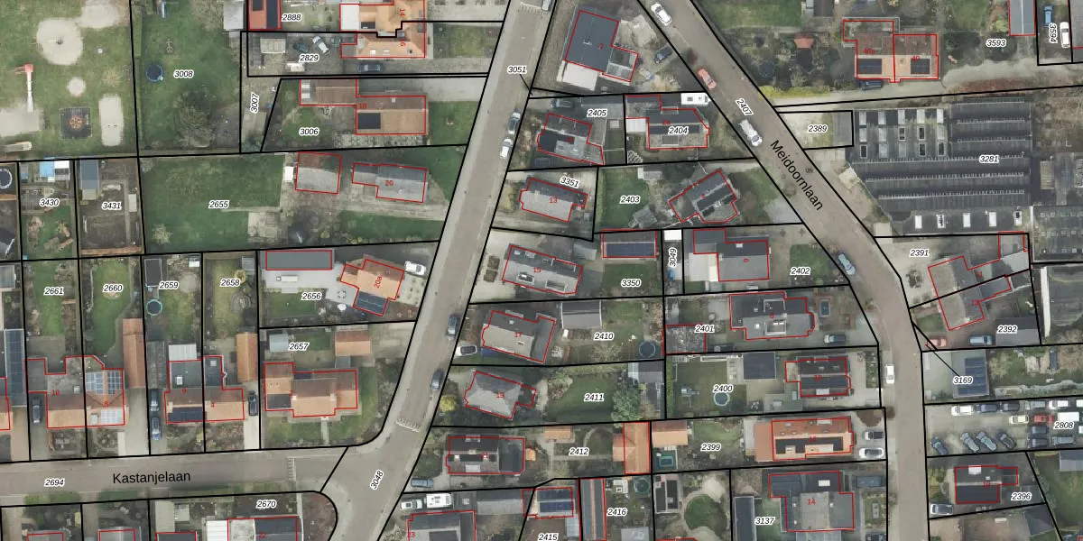 Het perceel waarop Langeslag 15 staat heeft een oppervlakte van 416 m². Dit is een groot perceel. De perceeloppervlakte wordt geregistreerd door het Kadaster. Gedetailleerde informatie over de maten van dit perceel kunt u vinden in het rapport Kadastrale kaart met maatvoering van Langeslag 15.