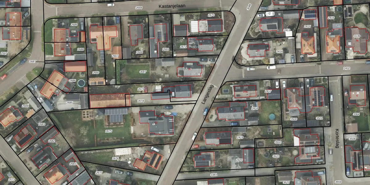 Het perceel waarop Langeslag 28 staat heeft een oppervlakte van 560 m². Dit is een groot perceel. De perceeloppervlakte wordt geregistreerd door het Kadaster. Gedetailleerde informatie over de maten van dit perceel kunt u vinden in het rapport Kadastrale kaart met maatvoering van Langeslag 28.