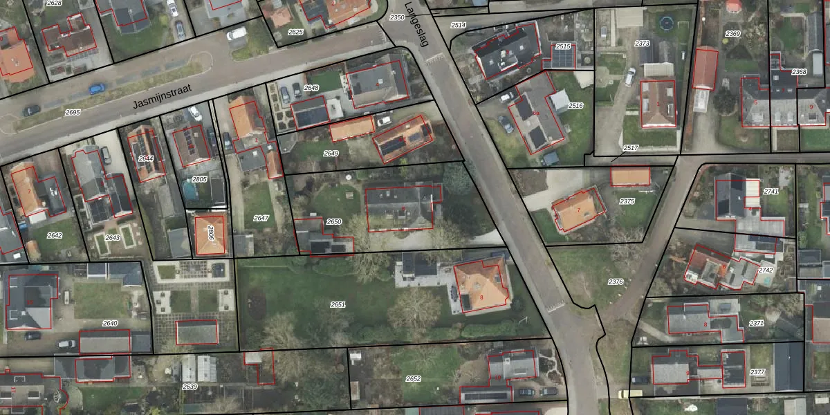 Gebruik de zoekbalk of klik op een perceel voor informatie over de adressen binnen dit perceel.