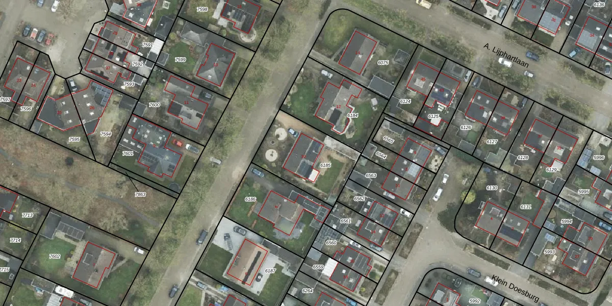 Gebruik de zoekbalk of klik op een perceel voor informatie over de adressen binnen dit perceel.