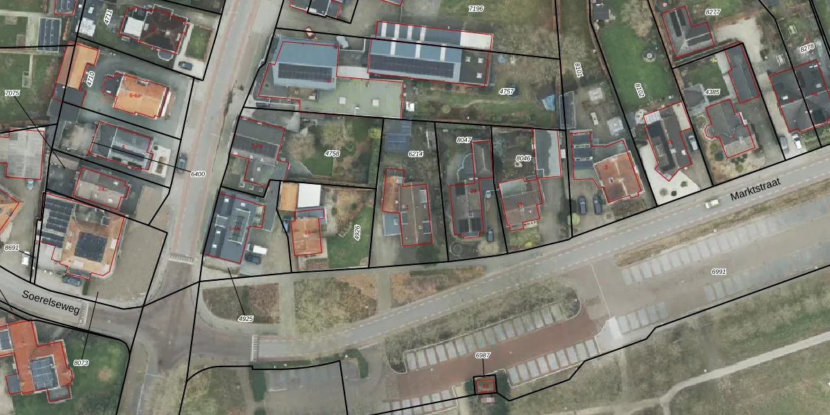 Het perceel waarop Marktstraat 2 staat heeft een oppervlakte van 547 m². Dit is een groot perceel. De perceeloppervlakte wordt geregistreerd door het Kadaster. Gedetailleerde informatie over de maten van dit perceel kunt u vinden in het rapport Kadastrale kaart met maatvoering van Marktstraat 2.