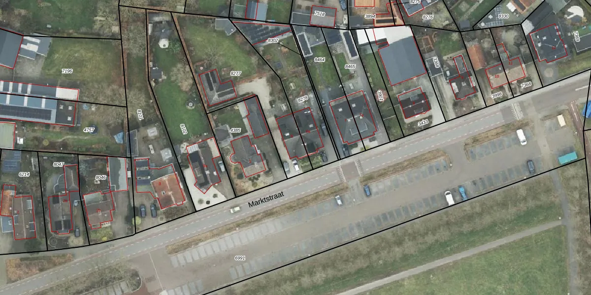 Het perceel waarop Marktstraat 6 staat heeft een oppervlakte van 1003 m². Dit is een zeer groot perceel. De perceeloppervlakte wordt geregistreerd door het Kadaster. Gedetailleerde informatie over de maten van dit perceel kunt u vinden in het rapport Kadastrale kaart met maatvoering van Marktstraat 6.