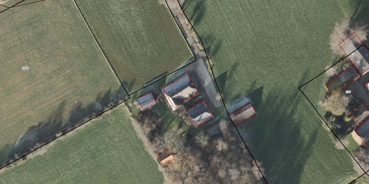 Het perceel waarop Meenseweg 2-a staat heeft een oppervlakte van 1,8 ha. Dit is een zeer groot perceel. De perceeloppervlakte wordt geregistreerd door het Kadaster. Gedetailleerde informatie over de maten van dit perceel kunt u vinden in het rapport Kadastrale kaart met maatvoering van Meenseweg 2-a.