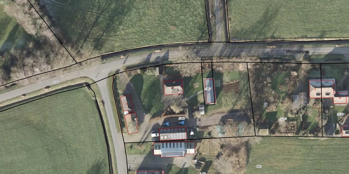 Het perceel waarop Meenseweg 6 staat heeft een oppervlakte van 3214 m². Dit is een zeer groot perceel. De perceeloppervlakte wordt geregistreerd door het Kadaster. Gedetailleerde informatie over de maten van dit perceel kunt u vinden in het rapport Kadastrale kaart met maatvoering van Meenseweg 6.