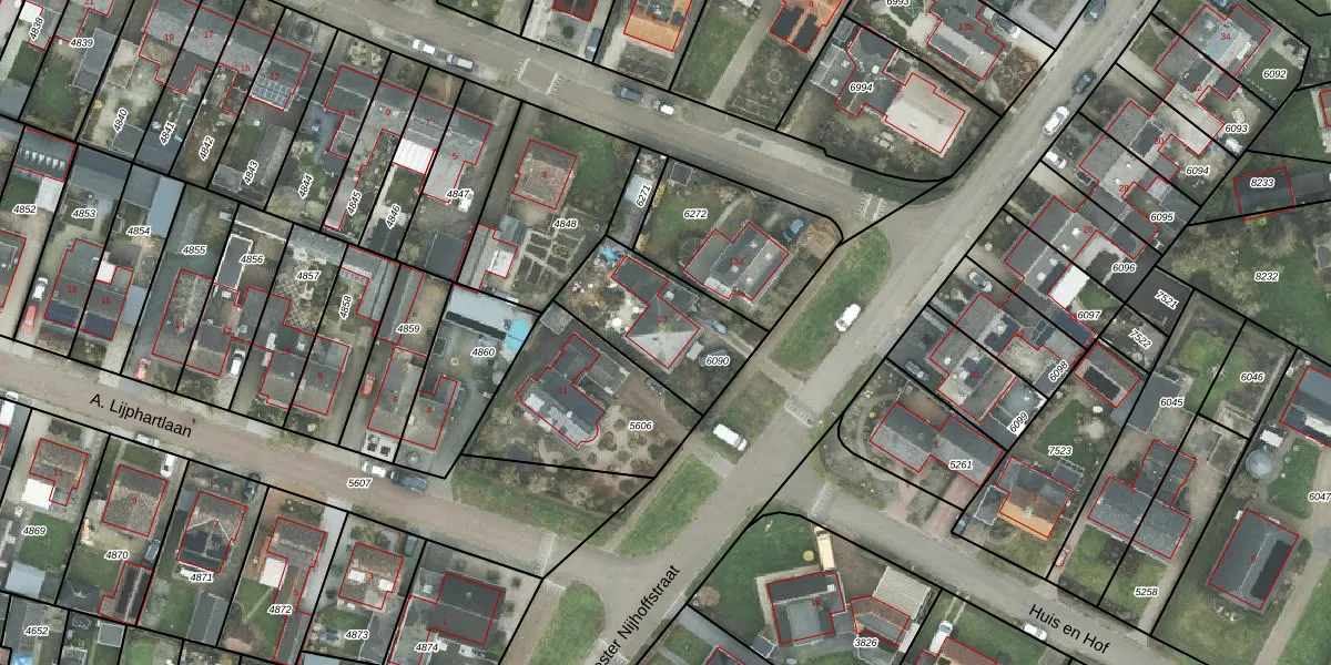 Gebruik de zoekbalk of klik op een perceel voor informatie over de adressen binnen dit perceel.