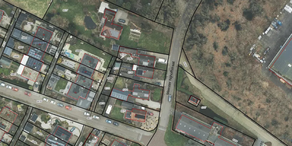 Gebruik de zoekbalk of klik op een perceel voor informatie over de adressen binnen dit perceel.