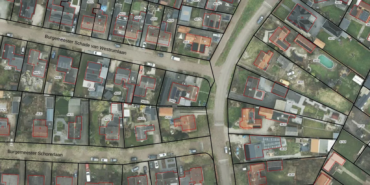 Gebruik de zoekbalk of klik op een perceel voor informatie over de adressen binnen dit perceel.