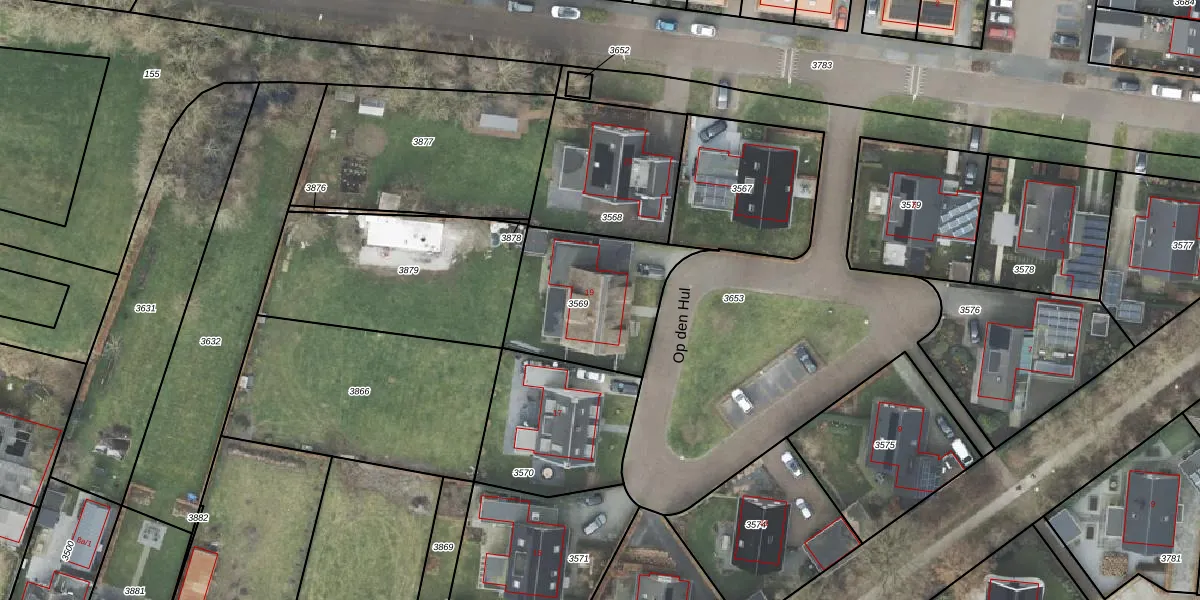 Het perceel waarop Op den Hul 19 staat heeft een oppervlakte van 521 m². Dit is een groot perceel. De perceeloppervlakte wordt geregistreerd door het Kadaster. Gedetailleerde informatie over de maten van dit perceel kunt u vinden in het rapport Kadastrale kaart met maatvoering van Op den Hul 19.