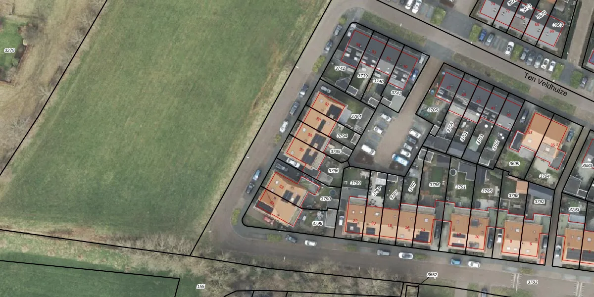 Gebruik de zoekbalk of klik op een perceel voor informatie over de adressen binnen dit perceel.