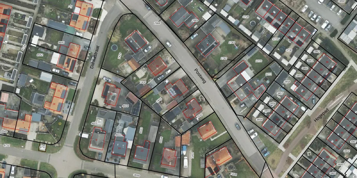 Het perceel waarop Postweg 12 staat heeft een oppervlakte van 432 m². Dit is een groot perceel. De perceeloppervlakte wordt geregistreerd door het Kadaster. Gedetailleerde informatie over de maten van dit perceel kunt u vinden in het rapport Kadastrale kaart met maatvoering van Postweg 12.