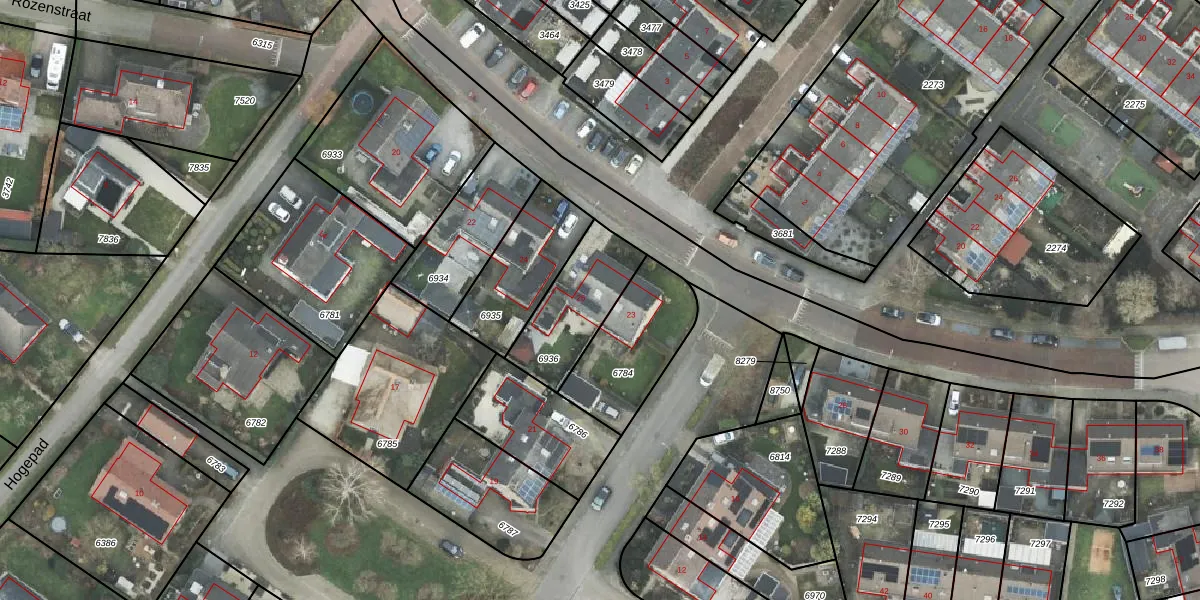 Gebruik de zoekbalk of klik op een perceel voor informatie over de adressen binnen dit perceel.
