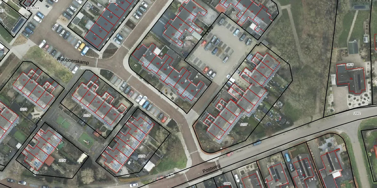 Het perceel waarop Rooboerskamp 50 staat heeft een oppervlakte van 2510 m². Dit is een zeer groot perceel. De perceeloppervlakte wordt geregistreerd door het Kadaster. Gedetailleerde informatie over de maten van dit perceel kunt u vinden in het rapport Kadastrale kaart met maatvoering van Rooboerskamp 50.
